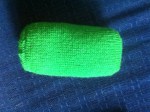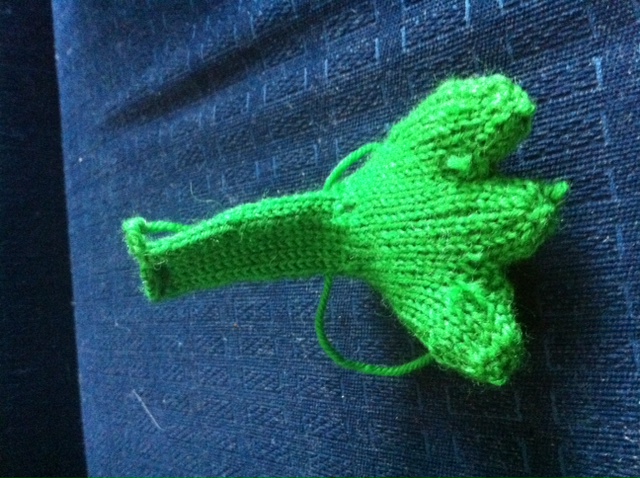 This is his body, made using the Magic Loop method on circular needles. His butt was done with double-pointed needles, and yes I managed to knit the wrong way out so it’s wrong-way-round. It’s all about Individuality.