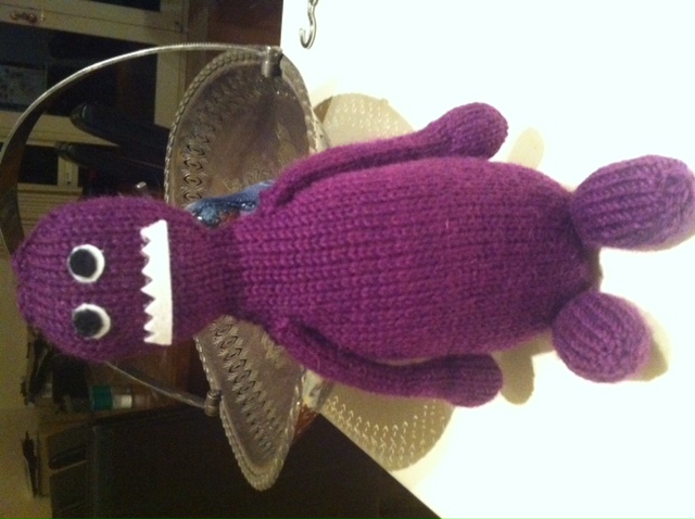 Last year I got adventurous and I decided to try my hand at knitting socks. How hard can it be, right?? Fortunately, unbeknownst to me I had actually been practising the hard bits – some of the monster feet in Rebecca Danger’s patterns have turned heels etc. So the answer was “not quite as hard as I expected,” while still being a serious slog. Nice socks are made from awfully light yarn! Anyway, for my birthday the ever-lovely Alisa sent me a flying saucer. The yarn itself comes as what looks like a flying saucer, and if you knit it right you get flying saucers as part of the pattern! Awesome!